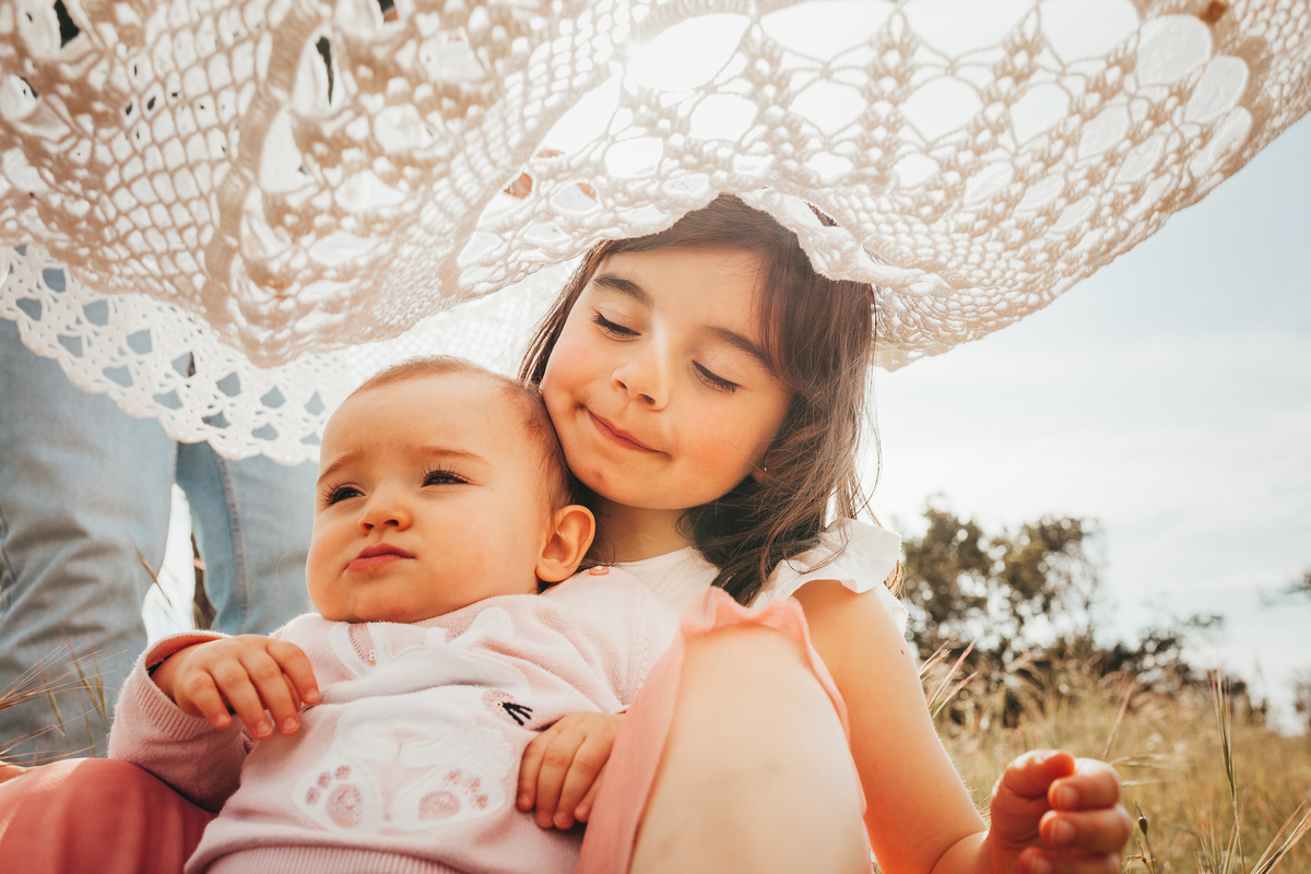 O olhar doce da mana mais velha e a dança harmoniosa da mana mais nova. Toda a sintonia de uma bolha de amor...